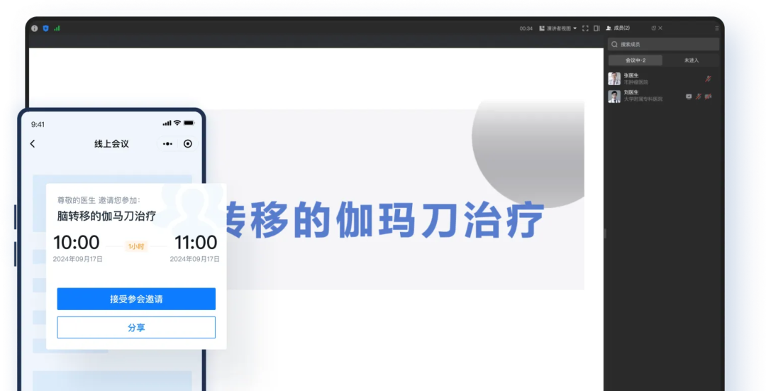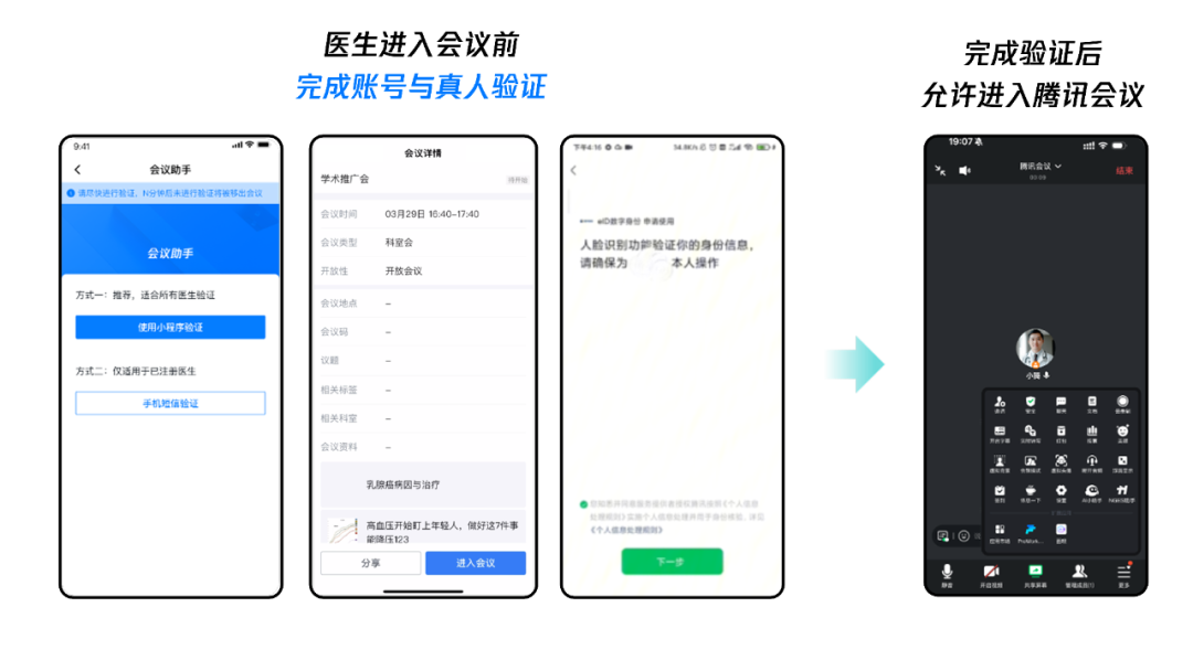 依托腾讯会议的开放技术支撑,平台实现无感式参会身份验证,参会人员无需繁琐操作,即可快速完成身份核验,既简化了参会流程,又从源头杜绝非认证人员混入会议的风险。更值得关注的是,平台近期将升级集成人脸识别核验功能,通过精准的生物识别技术,进一步确保参会人身份的真实性与有效性,高标准按需满足医药行业对会议参与人员的合规要求。